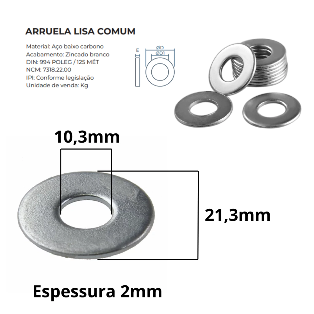 Arruela Lisa Zincado Branco, produto de alta qualidade fabricado pela New-Fix.