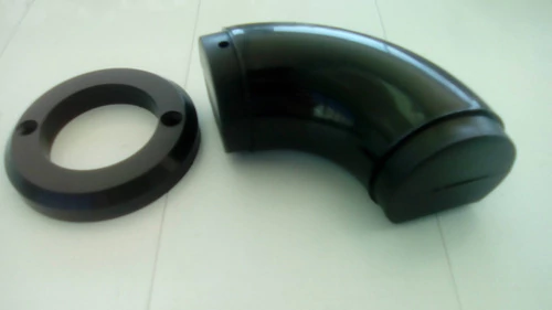 Curva de nylon redonda para tubo corrimão 2" polegadas. A curva de nylon permite melhor ajuste na emenda com o tubo de alumínio deixando visivelmente com melhor acabamento o corrimão e com garantia de segurança é a mais utilizada em obras.
