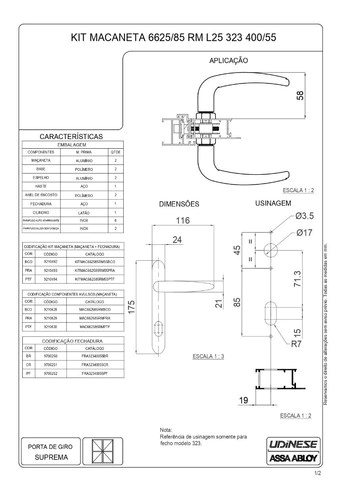 Fechadura Udinese 323/55 para portas de giro de alto padrão, qualidade e robustez com garantia de 5 anos da Udinese.