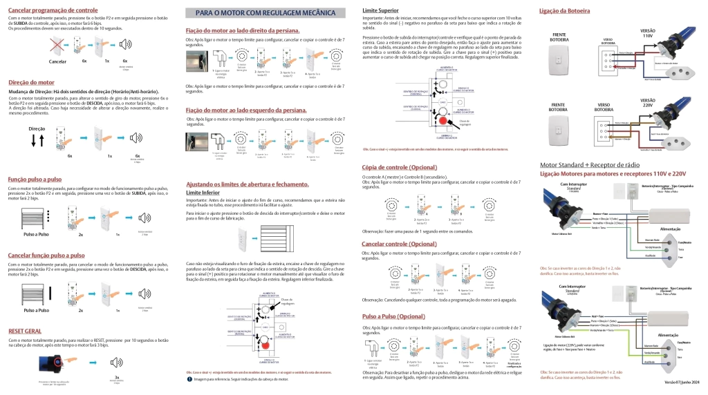 - Motor com acionamento por botoeira, suporta até 32kg, 13Nm de força, ideal para tubo octogonal de 40mm, podendo ser adaptado para tudo de 60mm (ADAPTADOR DE 60mm NÃO INCLUSO)